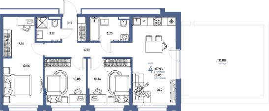Продаётся 4-комнатная квартира в строящемся доме (ГП-1 (Мельникайте, 42к1)), срок сдачи: IV-кв. 2026, общей площадью 107.93 кв.м., на 18 этаже. "Страна.Прибрежная" — жилой квартал с богатой историей, расположившийся в районе улиц ЕлизароваДамбовскаяМельникайте. Раньше здесь селились работники знаменитого Тюменского судостроительного завода, а сегодня их преемники могут почувствовать себя настоящими мореплавателями, которые отправились в кругосветное путешествие на огромном лайнере. Будущие жители прикоснутся к истории локации и пропитаются истинной романтикой приключений и открытий. И всё это в условиях максимального комфорта, который в "Стране.Прибрежной" окружает на всей территории: двор без машин и случайных прохожих; подземный паркинг; дизайнерские парадные; дворовое пространство разделено на несколько зон, чтобы каждый нашел себе занятие по душе; квартиры с лоджиями, балконами, с террасами и панорамными окнами, чтобы жители могли любоваться красивой панорамой города; круглосуточное видеонаблюдение и собственная охрана 24/7; на первых этажах квартала размещена необходимая коммерция — не придётся надолго уходить из дома, чтобы решить бытовые вопросы, — нужное под рукой.