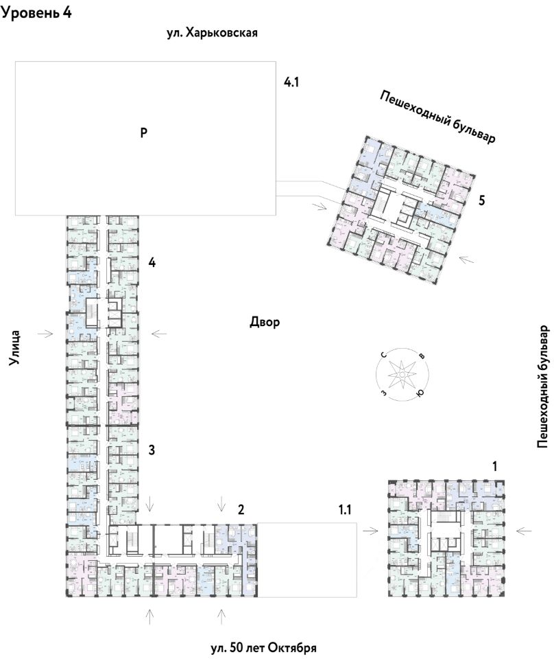 - Основная идея благоустройства дворов — создание камерного, уютного пространства. Периметры кварталов образуют закрытые контуры, внутри которых расположились тихие дворы с местами для отдыха, игровыми и релакс-зонами. Благодаря сквозным парадным во дворе нет машин. Защита от посторонних, служба охраны и видеонаблюдение 24/7 — гарантия безопасности вашей семьи.