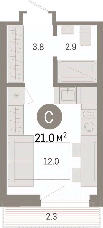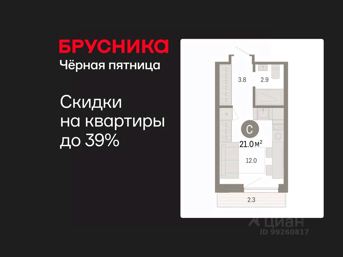 Студия в Октябрьском на Туре. Особенности планировки: предчистовая отделка, балкон.