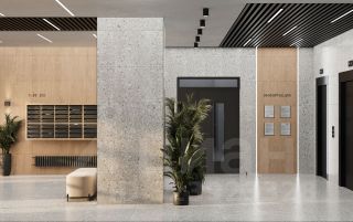 В квартире предчистовая отделка: стены оштукатурены и выровнены по общему уровню, на полу слой цементно-песчаного раствора с дополнительным гидроизоляционным слоем в ванной. Проведена электрика и готовы розетки с выключателями. А ещё установлены сейф-двери и счётчики с телеметрией.