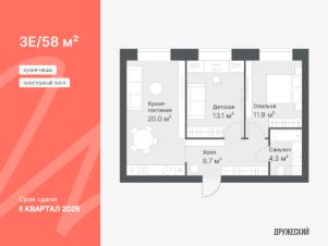 Квартира в квартале "Дружеский" на улице Кремлёвской рядом с Московским трактом. Здесь два дома разной этажности — они объединены приватным двором без машин. Вместо них зоны отдыха и детские площадки из натуральных материалов. Рядом супермаркеты с пунктами выдачи, новая школа и торговый центр "Колумб".