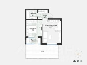 Квартира с урбан-садом. Это прилегающий к дому участок, где летом можно поставить плетёную мебель и выходить, чтобы почитать книгу. Зимой — выпить горячий шоколад на свежем воздухе. Выход в урбан-сад через лоджию в спальне.