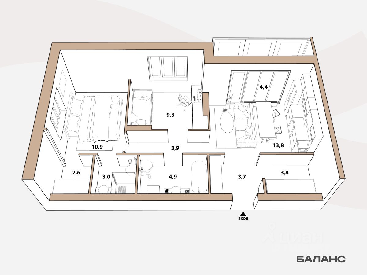 Планировка с мастер-спальней: продуманы отдельный санузел и гардеробная. Вторая гардеробная в прихожей. Выход на лоджию с панорамным остеклением в кухне-гостиной расширит пространство. В квартире предчистовая отделка: стены оштукатурены и выровнены по общему уровню, на полу слой цементно-песчаного раствора с дополнительным гидроизоляционным слоем в ванной. Проведена электрика и готовы розетки с выключателями. А ещё установлены сейф-двери и счётчики с телеметрией. Это не чистовая отделка, но во время ремонта будет меньше пыли. Вокруг много школ и детских садов, есть качественные клиники и большой парк для прогулок. Детские и спортивные площадки в закрытых дворах. Для машин продуман крытый паркинг для автомобилей. Он в 6 минутах ходьбы. Способы покупки: — ипотечные программы — обмен вашего жилья на новую квартиру — дистанционная покупка Узнать дополнительную информацию и записаться на встречу в офисе продаж можно по номеру, указанному в объявлении.