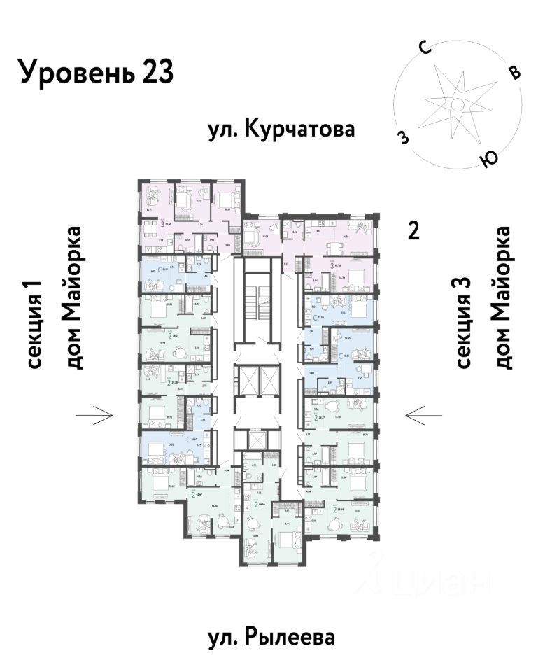 Продается 3комнатная квартира на 23 этаже от застройщика Страна Девелопмент. Площадь квартиры 62,78 кв. м.