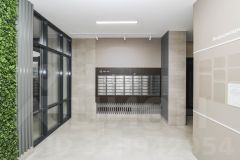 Подъезд. За счёт панорамного остекления входной группы в холлах первых этажей всегда будет больше дневного света. Вход в помещение будет выполнен на уровне земли.