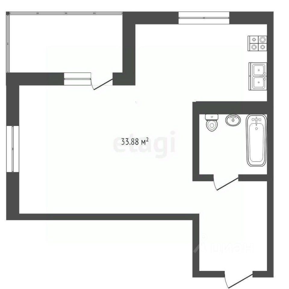 ОБЪЕКТ: Студия 33,9 кв.м., на 12-м этаже. ПЛАНИРОВКА: Очень удобная, комната правильной формы 16,4 кв.м., кухня 5 кв.м., в коридоре можно разместить большую гардеробную. Сан.узел. совмещён. Лоджия застеклена.