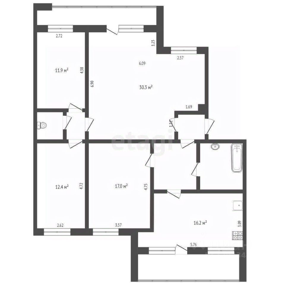 Общая площадь квартиры 106 квм.