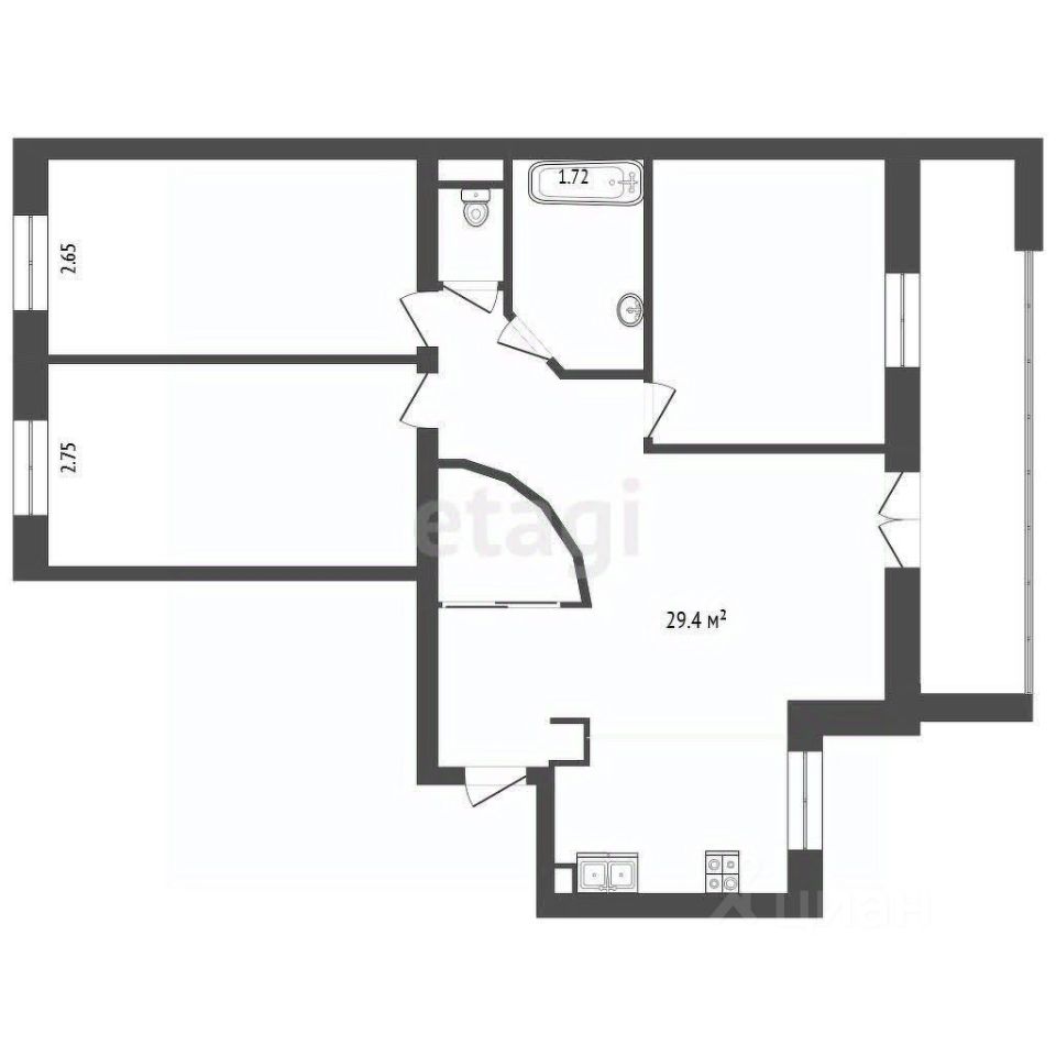 Квартира 3+ с кухней гостиной 29.4м,комфортная, очень светлая и уютная. Окна выходят на две стороны, в любое время суток можно любоваться архитектурой нашего красивого города!