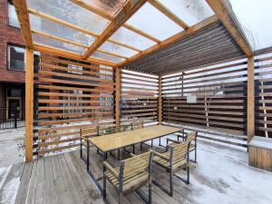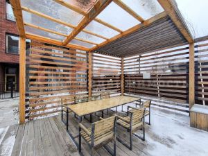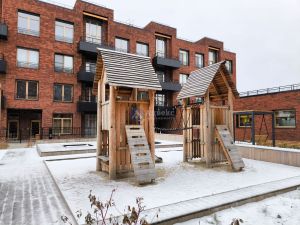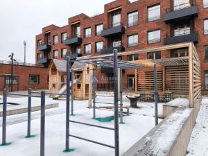 Фасад дома, выполненный из кирпича ручной формовки, что придает зданию неповторимый шарм и элегантность. Дворовая территория огорожена. Вход во двор осуществляется по системе телеметрии, обеспечивая максимальную безопасность. В доме установлена многоуровневая система очистки воды. Идеальные условия для отдыха и игр детей создает приватное пространство двора с современной детской площадкой и уютной лаунж-зоной с патио из натуральных материалов .