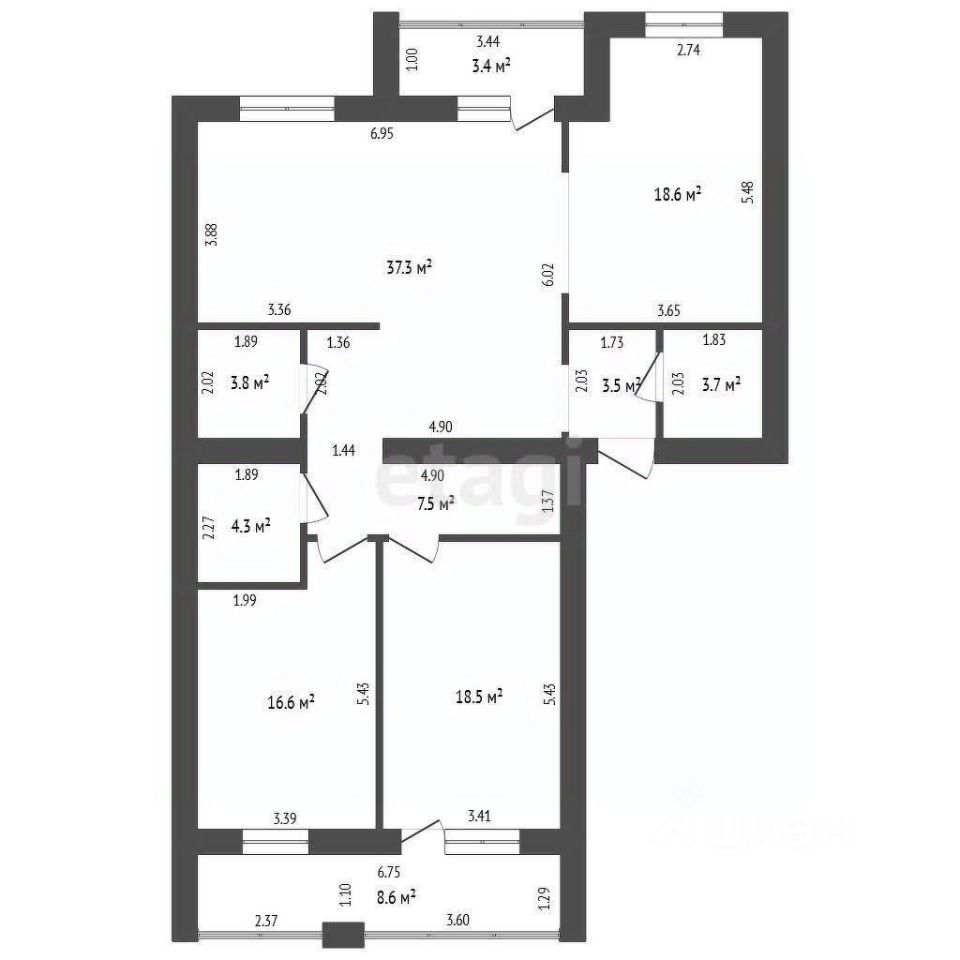 •три изолированные спальни 16.6,18.5и 18.6 кв.м