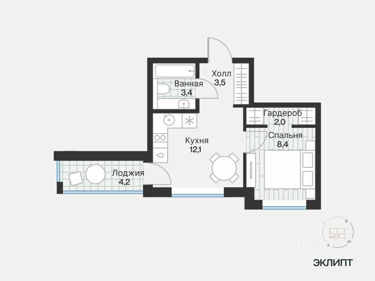 Планировка-трансформер: сделайте в спальне гардеробную или оставьте всё как есть. В кухне просторно — она с выходом на угловую лоджию.