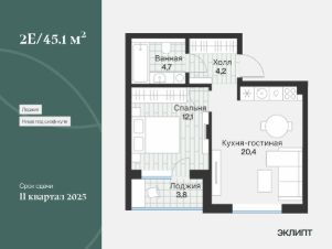 Продается 1-комн. квартира, 43,19 м²