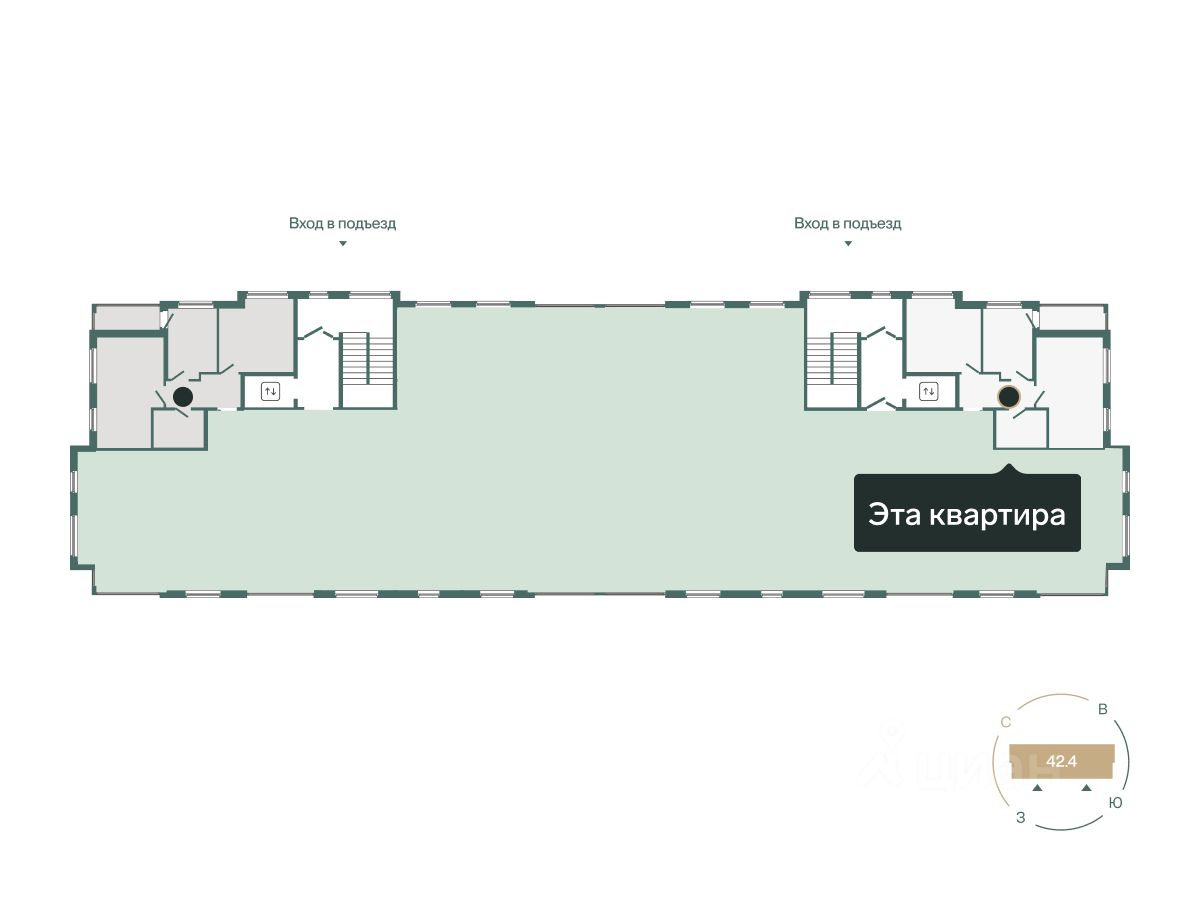 Планировка с окнами на две стороны. В квартире две спальни — в одной из них место под гардеробную, а в другой выход на панорамную лоджию.