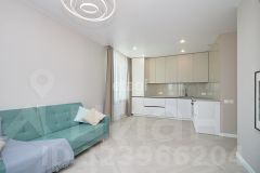При выполнении ремонта были использованы качественные материалы, стены выровнены, оклеены обоями повышенной плотности нейтральных тонов, на полу ламинат дизайн-ёлочка, в санузле керамогранит с мозаикой " Kerama Marazzi "+ теплый пол, антивандальные межкомнатные двери. Кухонный гарнитур сделан по индивидуальному заказу, фартук из широкоформатного, глянцевого керамогранита коллекции " Парнас", встроенная техника: индукционная плита, духовой шкаф, посудомоечная машина.