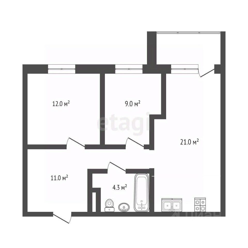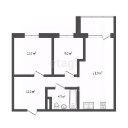 Квартира имеет 2 спальни и большую кухню-гостиную ( 21 кв). Гармоничная, функциональная планировка, совмещенный санузел, правильная прихожая со встроенным шкафом- купе.