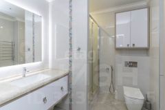 В прихожей и санузлах вас порадует керамогранит от известного бренда Керама Мараци, который не только красив, но и практичен. Фасады корпусной мебели окрашены высококачественной эмалью, что обеспечивает долговечность и легкость в уходе. Установленная система вытяжной вентиляции гарантирует свежесть и комфорт в любое время года.