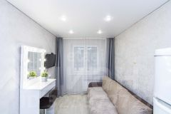 — Небольшая современная кухня —Холодильник и телевизор, -Шкаф для одежды, стиральная машина — Удобный просторный диван для отдыха — Изящный косметический столик с зеркалом и креслом