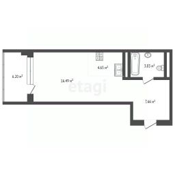 Просторная гостиная (16,40 кв.м.), кухня-ниша (4,65 кв.м.), балкон (4,28 кв.м.) и современный санузел (3,83 кв.м.),прихожая 7,44 кв.м создают комфортное пространство для жизни.