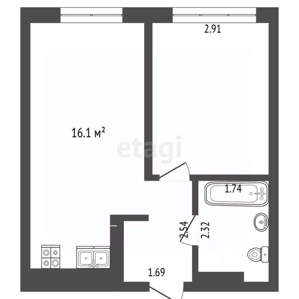 Кухня гостинная 16 кв.м, спальня 13 кв.м., просторный сан. узел 3.5 кв.м, Удобный 2й этаж.