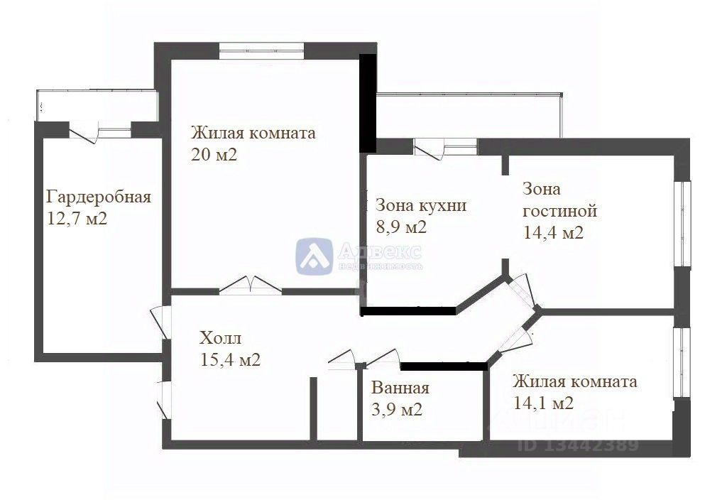 - большая гардеробная 12,8 м2 оборудована вместительными шкафами и местами для хранения;