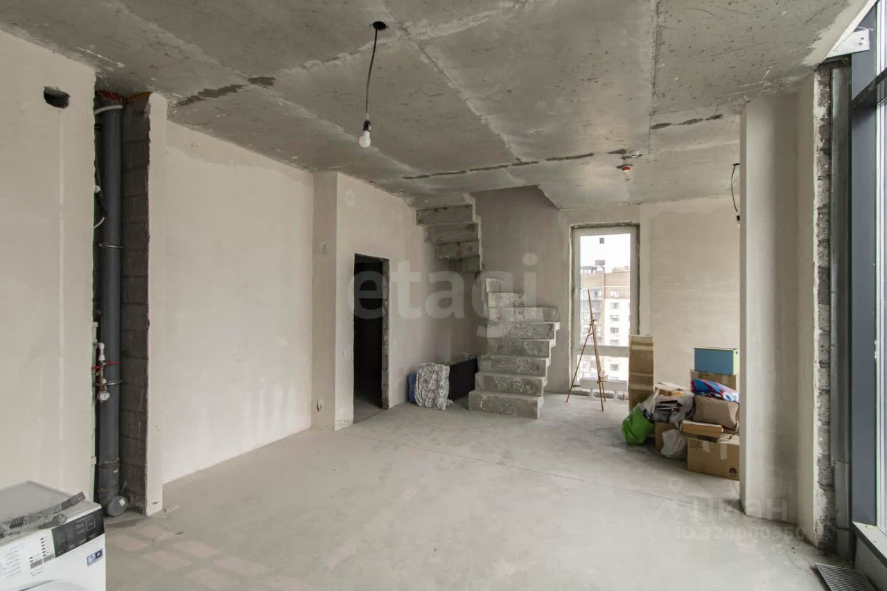 О квартире: квартира располагается на 16 и 17 этажах формата "пентхаус" высота потолков 3 м, на первом этаже располагается зона прихожей, кухня гостиная с панорамными окнами, выходом на террасу, большим гостевым санузлом. На втором этаже санузел, две изолированные комнаты (детская и родительская мастер-спальня, санузел с окном и гардеробная). Также в квартиру можно зайти с любого этажа.