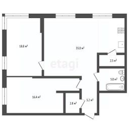Просторная и светлая евротрёшка: