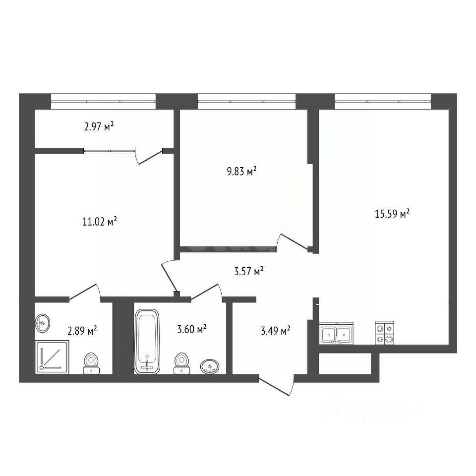 Лаконичное зонирование, отдельные спальни, правильные пропорции помещений — планировка продумана так, чтобы в квартире было удобно каждому члену семьи. Формат 2+ идеально подходит и для жизни, и для сдачи в аренду.