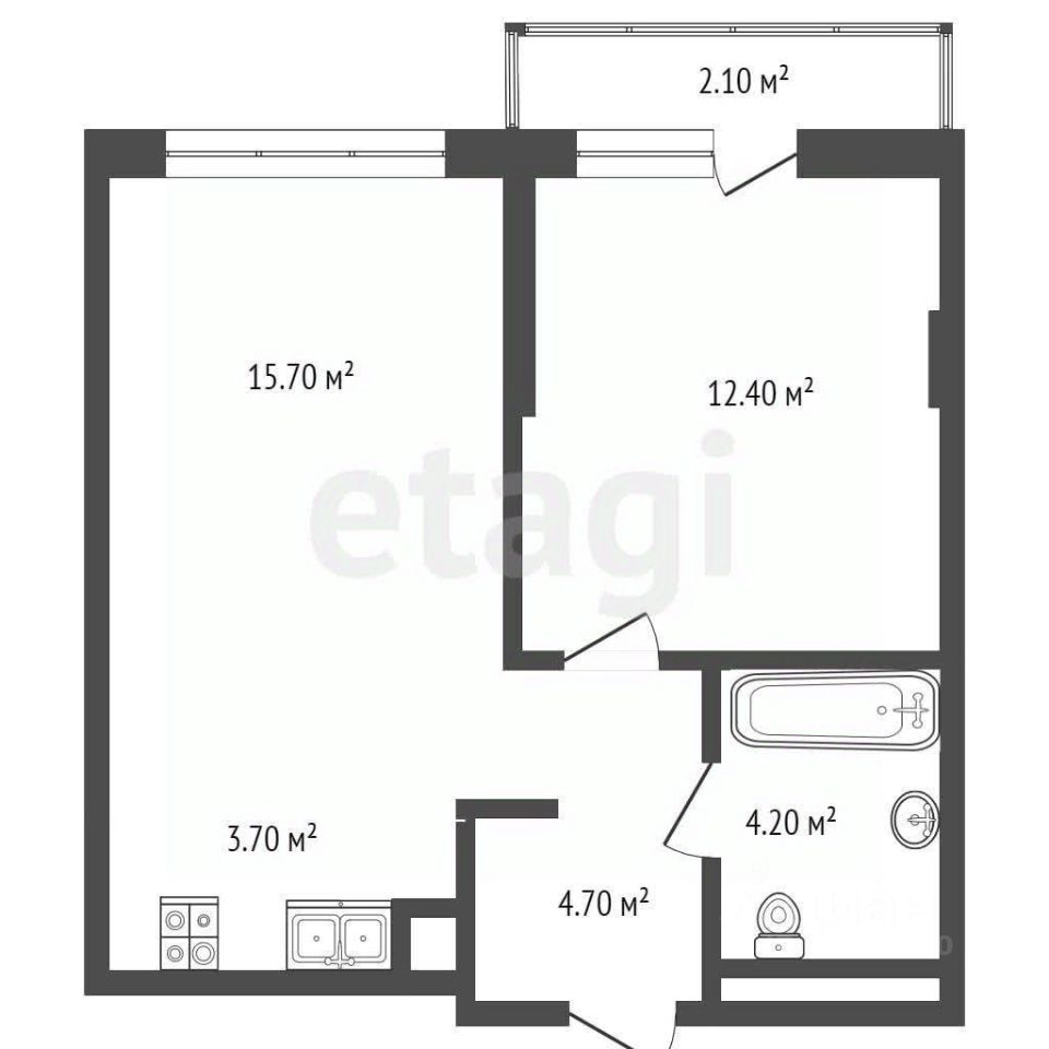 Квартира площадью 41.4 кв.м. Площадь кухни-гостиной 20 кв.м. Комната - 12.4 кв.м. с выходом на французский балкон.