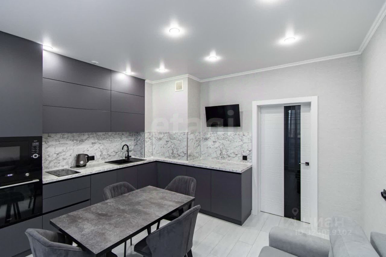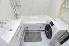 Квартира с качественным ремонтом в нейтральных тонах отличается продуманной планировкой: изолированная кухня-гостиная 15,8 м² с современной техникой, уютная спальня 16,4 м², большая лоджия на всю ширину квартиру с витражным остеклением и с выходом на террасу. Санузел раздельный в кафеле, с сантехникой премиум-сегмента, вместительная гардеробная.