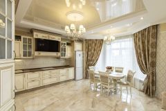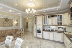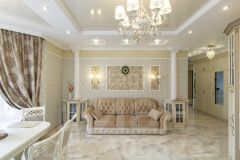 В квартире выполнен качественный ремонт, в отделке использованы только самые современные и качественные материалы, стилизованные под классику, вся мебель изготовлена под заказ. Проектом освещения, предусмотрены различные сценарии света.