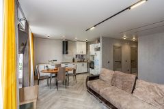 - В квартире удобная и функциональная планировка, выполнен современный ремонт, на стенах обои, на полу ламинат, потолки натяжные матовые и застекленный балкон.