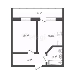 Функциональная планировка квартиры: просторная кухня правильной формы более 10 кв.м. с выходом на огромную 6.4 кв.м., остекленную лоджию (её можно при желании утеплить и использовать, например, как рабочий кабинет, лаунж-зону, зимний сад), совмещенный сан.узел, спальную комнату. Общая площадь квартиры с учетом лоджии 40 кв.м.
