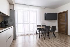 Просторная и светлая квартира с современной планировкой категории 1+ предлагает эффективное использование каждого квадратного метра. Ключевым преимуществом объекта является большой изолированный балкон, который можно функционально использовать как зону для отдыха или расширения жилого пространства. Панорамное остекление обеспечивает постоянное естественное освещение и способствует визуальному расширению помещений. Жилой комплекс характеризуется спокойной атмосферой и социально однородной средой, что гарантирует комфортное проживание. Инфраструктура района полностью укомплектована: в шаговой доступности расположены супермаркеты, пекарни и другие объекты повседневного спроса. Транспортная доступность является сильным преимуществом: время в пути до центра города не превышает 15 минут на общественном транспорте, остановки которого находятся в непосредственной близости. Поездка до основных университетских кампусов занимает от 10 минут, что делает объект особенно привлекательным для студентов и преподавателей. Состояние квартиры позволяет заселиться без дополнительных вложений, а продуманная планировка предоставляет возможности для дальнейшей персонализации пространства.