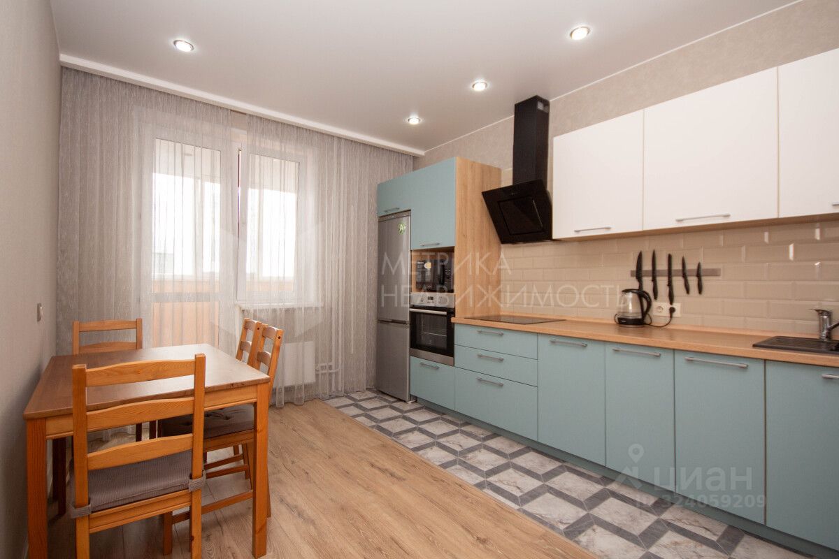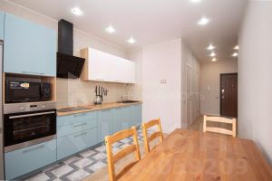 В квартире остается все необходимое для жизни: кухонный гарнитур с встроенной техникой, холодильник, стиральная машинка, диван в комнате и стол. Натяжные потолки, ламинат на полу, а также плитка в санузле и ванной комнате — все это создает гармоничный и современный интерьер. Лоджия остеклена и имеет площадь 4 кв.м., что добавляет дополнительное пространство для отдыха.