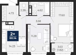 Просторная 2-комн. квартира в ЖК "Беринг" на 7 этаже. Квартира без отделки, новый владелец может сделать ремонт по своему проекту. Общая площадь: 60.14 кв.м., жилая: 28.88 кв.м., площадь просторной кухни-столовой: 14.23 кв.м. Комнаты изолированные, все окна выходят на одну сторону. В квартире одна лоджия, один совмещенный и один раздельный санузел. Высота потолков 2.75 м.