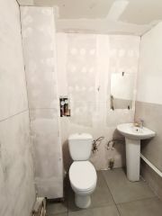 Пансионат 20 м2 (16.5 м2+балкон 4 м2). В квартире заменена проводка и утеплен балкон (новый утеплитель + обшито гипсокартоном под покраску). Стены выровнены, остаётся поклеить обои, постелить линолеум и натянуть потолок. В санузле стены так же обшиты гипсокартоном и остается обшить пластиковыми панелями или оклеить влаго непроницаемой пленкой!