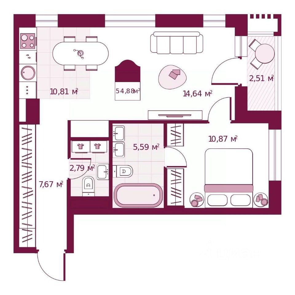 Продаётся 1-комнатная квартира в строящемся доме (Герцена, 33), срок сдачи: II-кв. 2026, общей площадью 54.88 кв.м., на 2 этаже. Новый жилой комплекс Secret Place от Специализированного застройщика "Сикрет плэйс" расположен по адресу: г. Тюмень, по ул. Герцена.