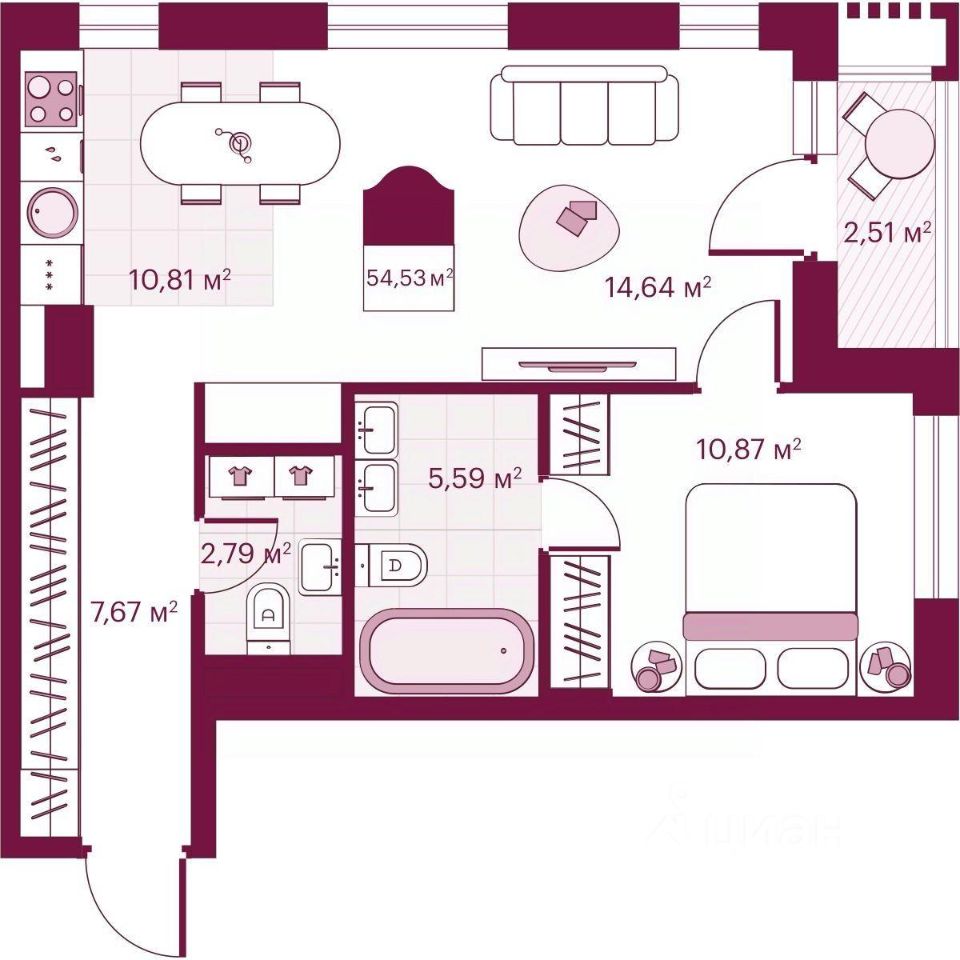 54,53 м²