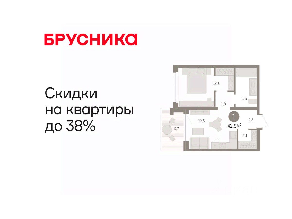 1-комн. квартира с предчистовой отделкой в ЖК "Дом у озера" на 6 этаже. Общая площадь: 42.89 кв.м., жилая: 12.1 кв.м., площадь просторной кухни-гостиной: 12.5 кв.м. Все окна выходят на одну сторону. В квартире одна лоджия, один совмещенный санузел. Высота потолков 2.7 м.