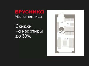 Продается 1-комн. студия с предчистовой отделкой в ЖК "Дом у озера" на 5 этаже. Общая площадь: 20.07 кв.м., площадь гостиной 11.8 кв.м., из которых 5 кв.м. выделено под кухонную зону. Все окна выходят на одну сторону. В квартире один совмещенный санузел. Высота потолков 2.7 м.
