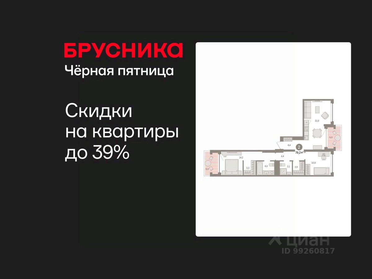 2-комн. квартира с предчистовой отделкой в ЖК "Дом у озера" на 6 этаже. Общая площадь: 79.21 кв.м. Высота потолков 2.7 м.