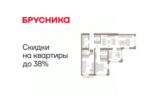 Квартира с кухней-гостиной и тремя спальнями в жилом районе "Зарека". Особенности планировки: предчистовая отделка.