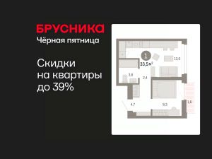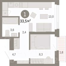Продается 1-комн. квартира от застройщика с предчистовой отделкой в ЖК "Зарека" на 17 этаже. Общая площадь: 33.53 кв.м., жилая: 8.3 кв.м., площадь просторной кухни-гостиной: 13 кв.м. Все окна выходят на одну сторону. В квартире один балкон, один совмещенный санузел. Высота потолков 2.7 м.