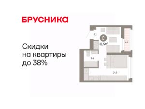 1-комн. студия с предчистовой отделкой в ЖК "Зарека" на 13 этаже. Общая площадь: 31.46 кв.м. Высота потолков 2.7 м.