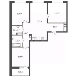 Площадь 78,3 кв.м, просторная кухня-гостиная 22,3 кв.м, три изолированные коменаты (11,8 кв.м, 11,8 кв.м с выходом на лоджию 3,75 кв.м, 12,5 кв.м), раздельный санузел. В ванной теплый пол, качественная сантехника, установлена сплит система.