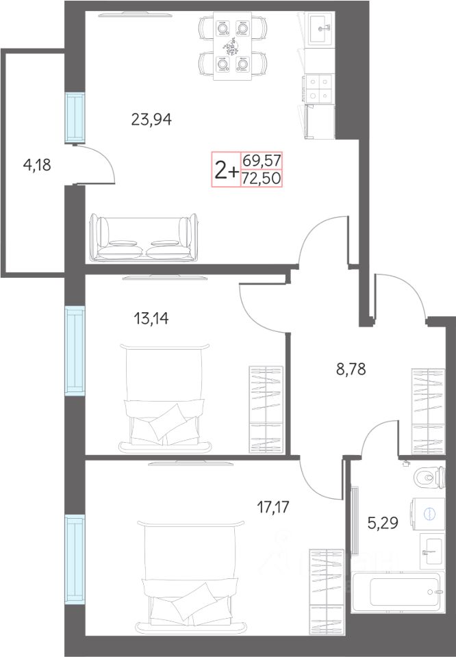Продаётся 3-комнатная квартира в строящемся доме (ГП-1 (Дом 29)), срок сдачи: I-кв. 2027, общей площадью 72.5 кв.м., на 3 этаже. Рассвет в Тобольске - это жилой комплекс из 4 домов, расположенный в границах улиц Нефтехимиков и Александра Абдулова, созданный для семейного проживания.