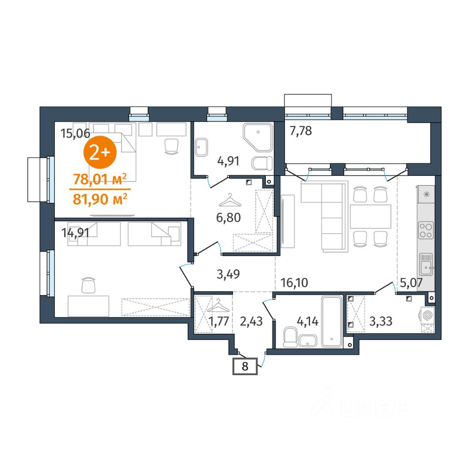 Общая площадь78,01 м²