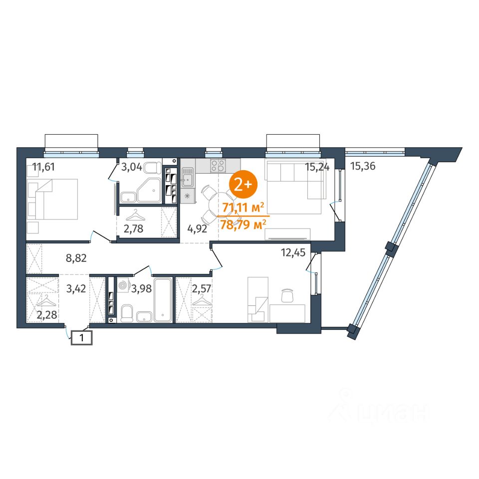 71,11 м²