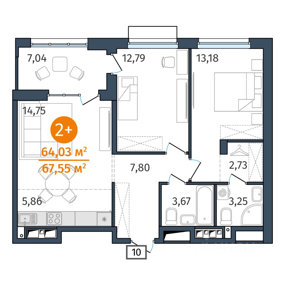 Продается 2-комн. квартира, 64,03 м²