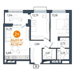 Общая площадь64,03 м²